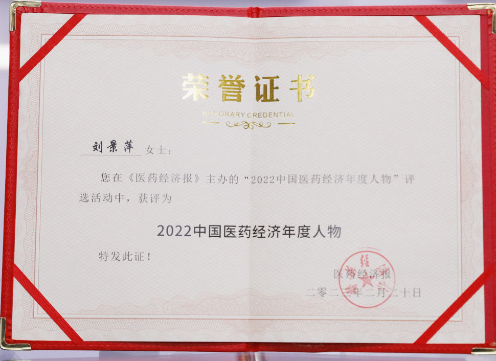 乐动药业集团董事长刘景萍当选“2022中国医药经济年度人物”