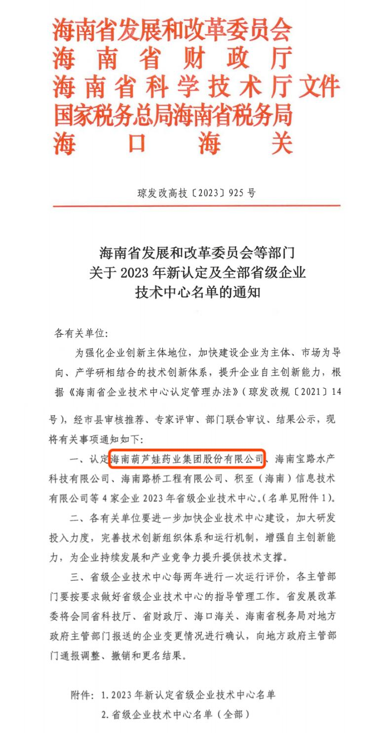 近日,海南省发改委等多部门联合公布了《关于2023年新认定及全部省级企业技术中心名单的通知》,其中,海南乐动药业集团股份有限公司成功通过评审,被认定为省级企业技术中心,是本次获批的4家企业之一。